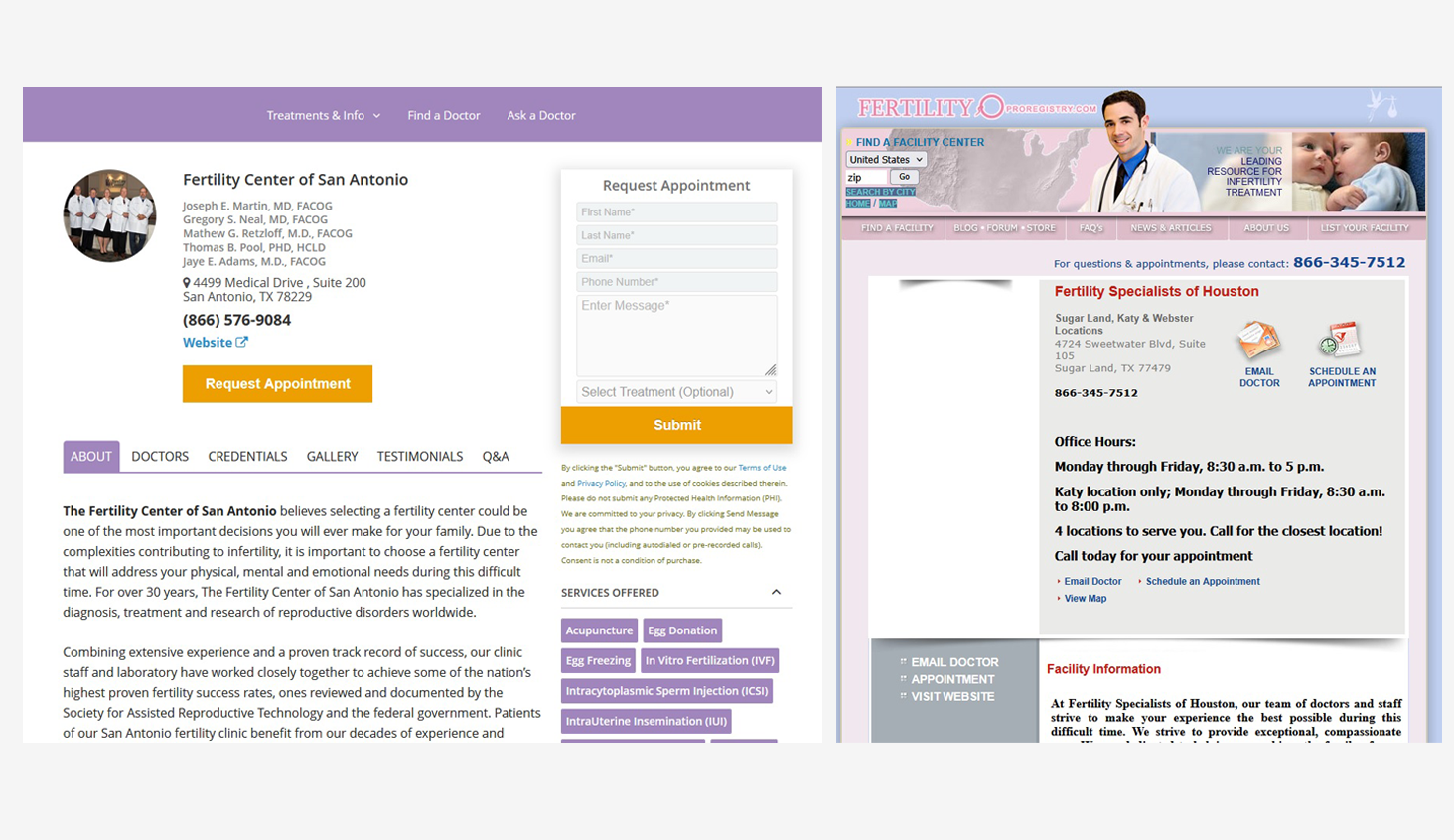 Before-and-after comparison of the doctor appointment page, illustrating the shift from static, confusing layouts to a streamlined, patient-friendly experience that improved engagement and lead flow.